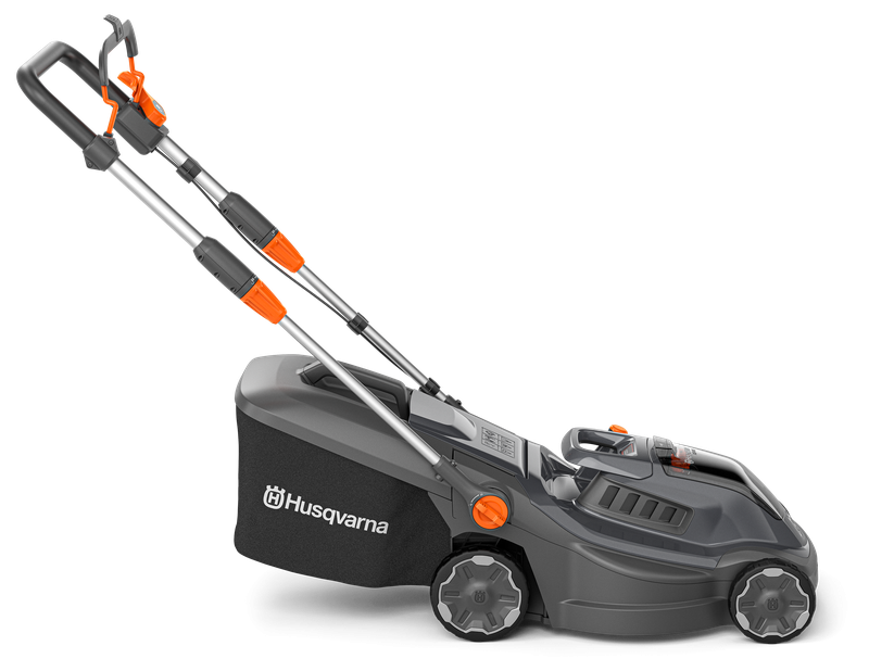 (Kit incl 18-C70 and 18-B72 - AU/NZ). Husqvarna Aspire™ LC34-P4A is an 18V battery lawn mower designed to make both mowing and storage as easy as possible. With its low weight and compact size, it is easy to manoeuvre in narrow passages, and with the lifting handle, it can be easily moved between the front and back garden when needed. The battery operation results in a low noise level that does not disturb the neighbours, and the handle is adjustable for a comfortable working position. Like all tools in the Husqvarna Aspire™ range, it has a sleek black design complemented by orange details that intuitively guide you to all interaction points. When mowing is complete, the lawn mower can be folded and stored standing vertically or on the wall with the included hook. The 18V POWER FOR ALL ALLIANCE battery system offers both flexibility and less storage, as one battery can be used for several tools and garden brands.
