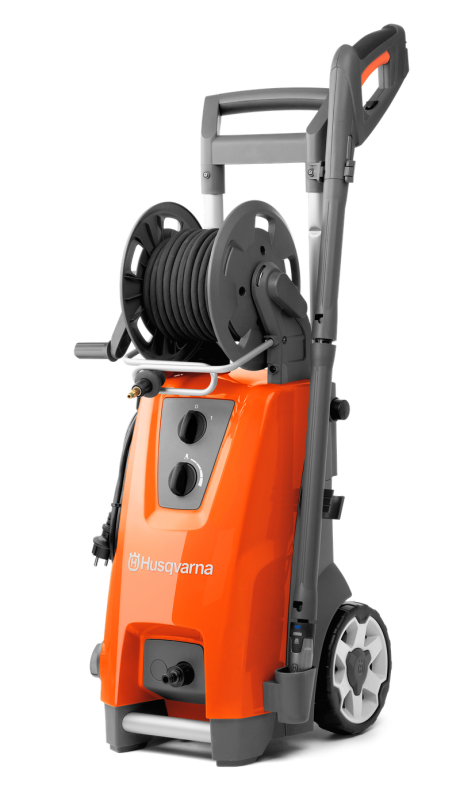 230-240V / 1~ / 50Hz _ "AU / NZ". An extra-large and powerful high-pressure washer with a robust and purposeful design, built for the toughest cleaning tasks outside. The brass pump with ceramic pistons ensures outstanding durability. With the pressure control you can adjust water flow and pressure perfectly. Includes an integrated detergent tank which is controlled on the front panel. The brass pump head ensures outstanding long-term performance. A steel reinforced armed high-pressure hose is included. The Low Force grip activates the trigger with less effort and more comfort for your hand. The induction motor ensures a dependable performance while the aluminium carrying handle facilitates transportation. Quick hose coupling, large and robust wheels for better traction, and a long spray lance add to the experience. Two swivel functions, for nozzle adjustment and quick connection, prevent hassle. On-board accessory storage, hose reel with metal support guide for easy roll-up and power cord storage make operation efficient. Two nozzles are included.