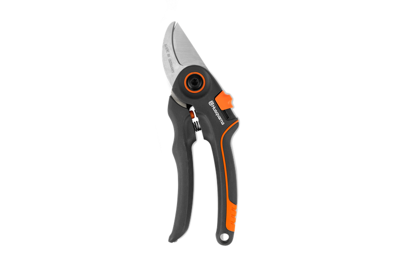 Secateur medium. Cut branches with this light, durable and medium-sized secateur that is smooth to operate with one hand. The handles can be adjusted to get faster cuts and to fit the user's hand size. Designed with tracks that keep sap away from the blades so they don't become sticky and get stuck in the branch. Equipped with handles that provide high force and dampers that reduce vibrations and make work more comfortable