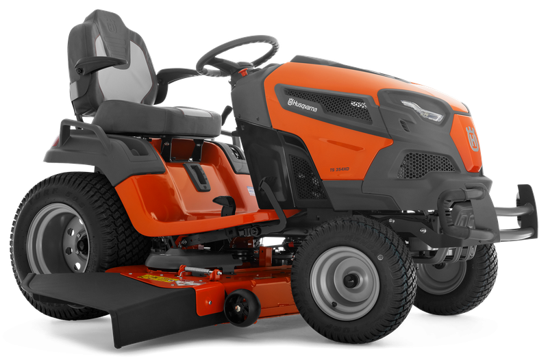 TS 354. Heavy duty garden tractor with unbeaten capabilities in its class. Versatile ClearCut? cutting deck and powerful, reliable engine mean fast mowing anytime, anywhere ? with a perfect result every time. Commercial grade ground-engaging transmission with dash operated differential lock works with large, wide rear tyres to enable tough usage without overheating, plus great traction and less damage to the lawn. Improved quality, comfort and ergonomics for an optimal driving and ownership experience. Driven by a powerful and robust, Kawasaki, twin cylinder engine.