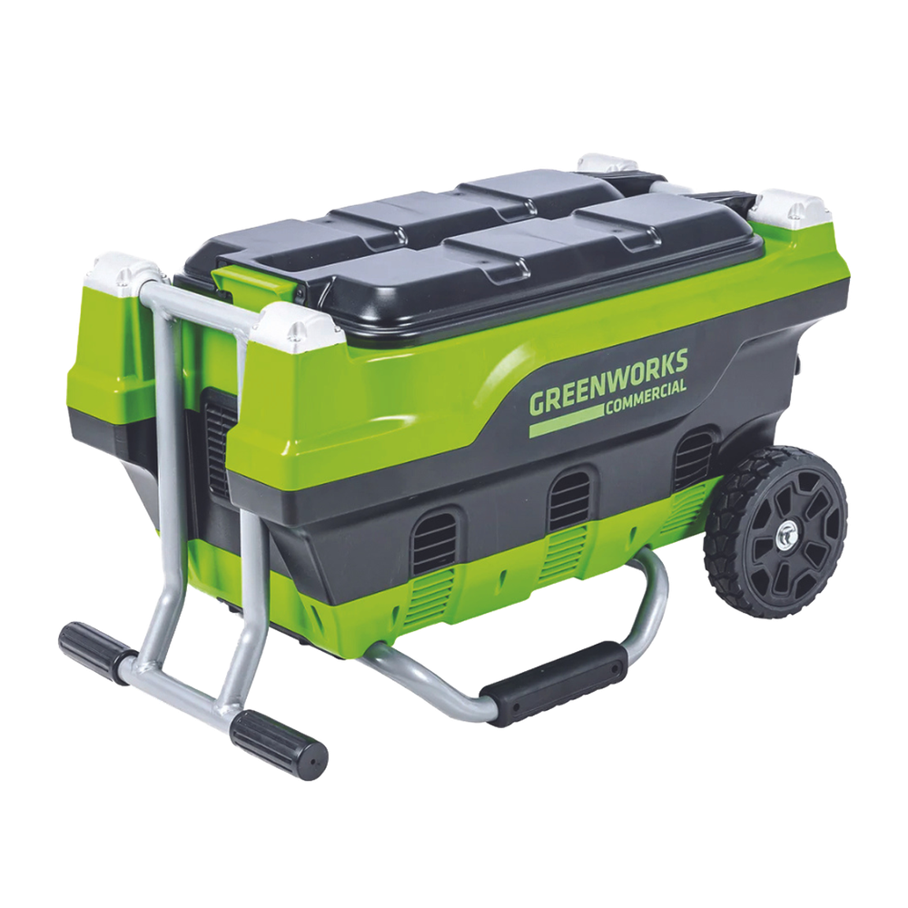 With unconditional compatibility, it can charge any 82V battery, regardless of size. The independent LED indicators display the charging status and diagnostics of each battery and the optimised air flow system pulls hot air out of each pack quickly and efficiently to rapidly cool down the battery 3x faster. The folding handle and rear wheels make for easy transportation so you can power through all day long, no matter how tough.