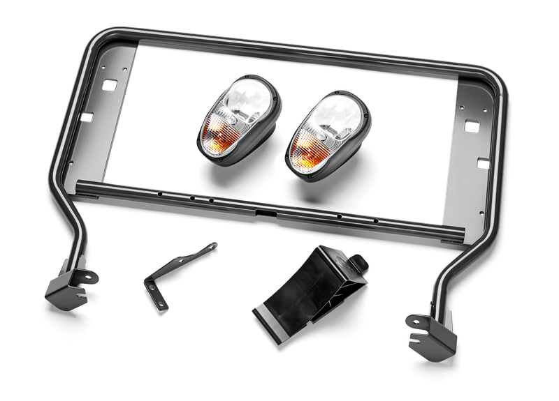 Front headlights - P525DX. Forward headlight with front turning and position lights. To be mounted to a separate light bar in the front. Requires control box kit. Suits P525DX