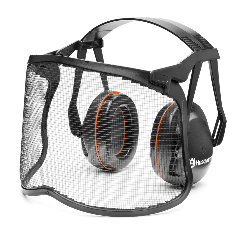 Garden Earmuffs with Mesh Visor. Garden earmuff complete with visor holder and mesh visor. Meets requirements of EN 352-1 and EN 166.