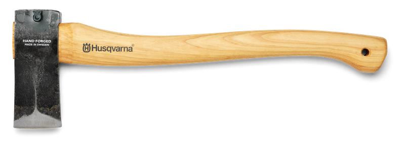 Small Splitting Axe - Hickory Shaft. This Small Splitting Axe, is designed for splitting lighter firewood. The head is designed to go easily into the wood, with minimal effort required to split the wood in two. The small size makes it possible to use one-handed. Husqvarna wooden handle axes are hand forged featuring high quality, precision ground Swedish steel and premium hickory shafts. Comes with a grain-leather guard for protection.