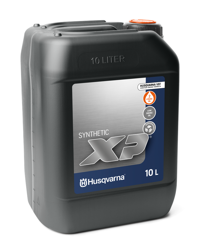 10 litre. Husqvarna?s fully synthetic and biodegradable (64% acc OESD301B) XP Synthetic 2-stroke oil is developed for tough use with high loads and engine speed. The low smoke oil gives extremely good lubrication,a cleaner engine and less coating on the piston and in the crankcase compared to competing oils. Appropriate for all Husqvarna 2-stroke products, especially for engines with a cylinder volume over 55 cm?.